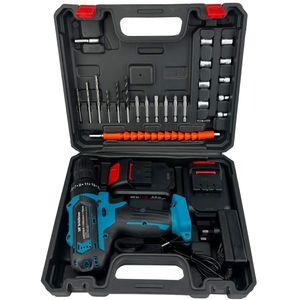 دو عدد باطری 48 ولت/ شارژر سوزنی /مته اهن سایز 4 و 5 و 6 /مته چوب سایز 4 و 5 و 6/ سری پیچ گوشتی 6 عدد (2عدد دوسو/2عدد چهارسو/2عدد الن ستاره ای) /سری بکس از سایز 5 تا 13 /یک عدد رابط فنری و 2 عدد رابط بکس