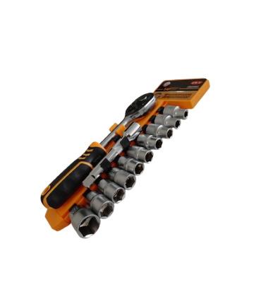 مجموعه 12 عددی آچار بکس تات شامل 10 عدد بکس در سایز های مختلف، یک عدد آچار جغجغه درایو 1/2 و یک رابط 12 سانتی متری است.