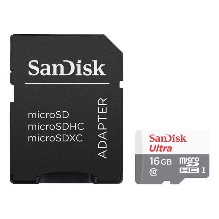 کارت حافظه microSDHC سن دیسک مدل Ultra کلاس10 استاندارد UHS-I سرعت 80MBps 533X همراه با آداپتور SD ظرفیت 16 گیگابایت