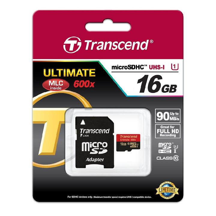 Transcend MicroSDHC Class 10 UHS-I 600x Memory Card 16GB