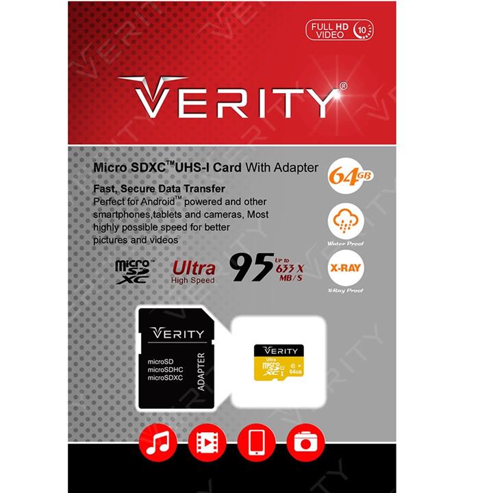 VERITY MicroSDXC Class 10 U1 95MB/S Memory Card With Adapter 64GB