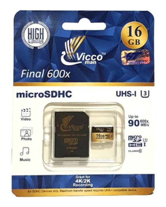 مشخصات فنی کارت حافظه microSDHC ویکو من مدل Extre600X کلاس 10 استاندارد UHS-I U3 سرعت 90MBps ظرفیت 32گیگابایت همراه با آداپتور SD