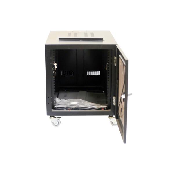 درب جلو شیشه ای با فریم فلزی همراه با قفل ریتال درب های جانبی و پشت بازشو همراه با قفل سوئیچی دارای 2 ریل عمودی با پانچ و نشانگر (u) در جلو و عقب رک امکان تنظیم فاصله ریل های عمودی در موازات عمق رک ورودی و خروجی کابل از بالا به پایین ستون های خم کاری شده قابلیت نصب پایه تنظیم قابلیت نصب یک عدد فن اضافه قابلیت نصب درب توری در جلو و عقب رک جهت اتاق سرور و تهویه هوای بهتر