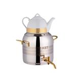 کتری و قوری کرکماز اصل ترکیه حک شده مدل A1619 ( ست کتری قوری استیل انواع برند لعابی شیردار پیرکس سوتی طلایی چینی برقی)