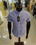 پیراهن راه راه درشت مردانه مدل آستین کوتاه تمام نخی اندامی