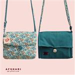 کیف دوشی پارچه ای مدل دورو کرم گلدار آبی فیروزه ای