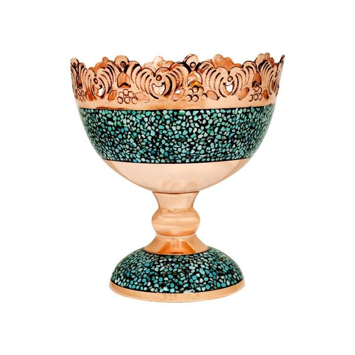 آجیل خوری فیروزه کوبی 11 سانتی کوچک هفت سینی قلم زنی شده و لب شبکه ای صنایع دستی سایروس مس و فیروزه کوبی