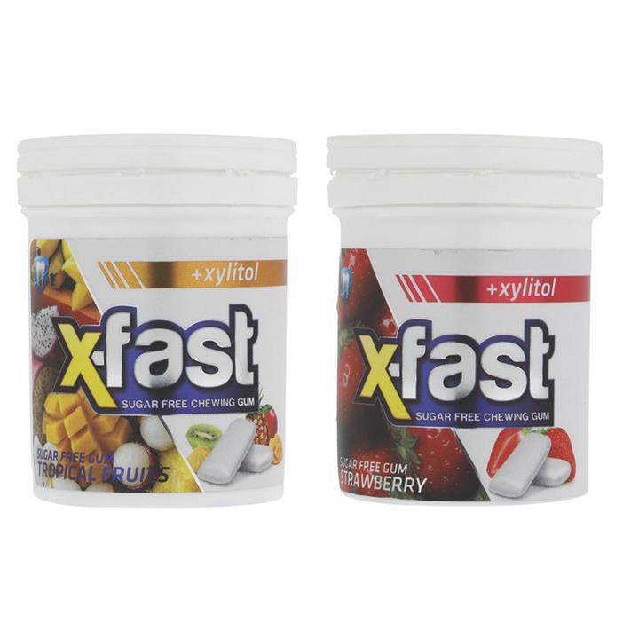 آدامس بدون شکر با طعم استوایی و توت فرنگی ایکس فست - 100گرم بسته دو عددی