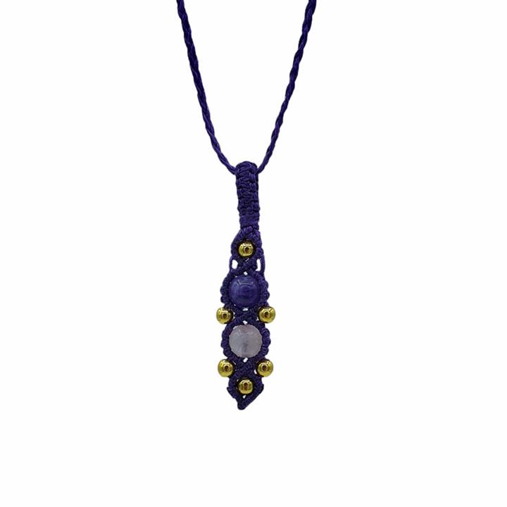 آویز دستساز مکرومه سنگ آمیتیست و رز کوارتز