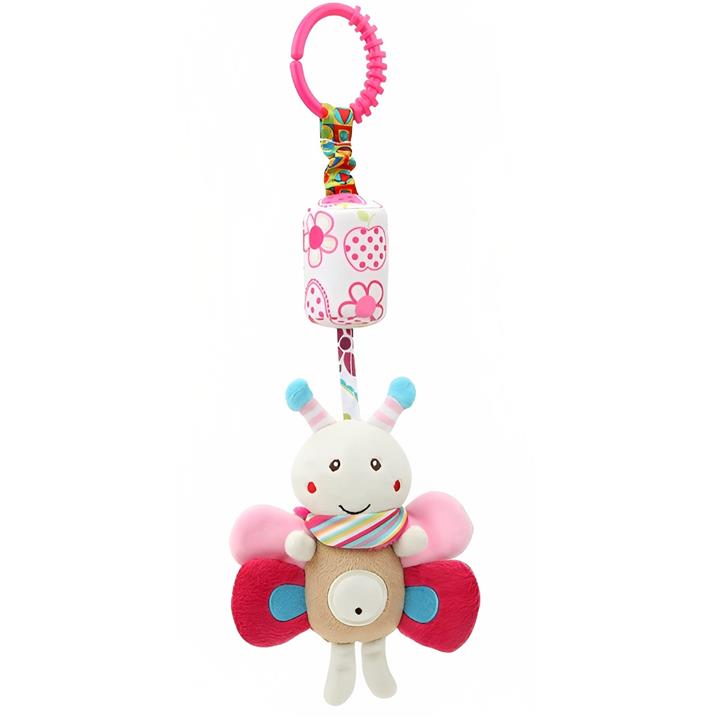\r\nبرند\r\nBbsky\r\n\r\nویژگی ها\r\n– جنس عروسک پولیشی ضد حساسیت\r\n– دارای استوانه جغجغه ای به ارتفاع 7 سانتی متر\r\n– دارای گیره جهت اتصال به دسته کالسکه ، تخت وکریر\r\n\r\nابعاد\r\n38 x 13 سانتی متر\r\n\r\nکشور تولیدکننده\r\nچین