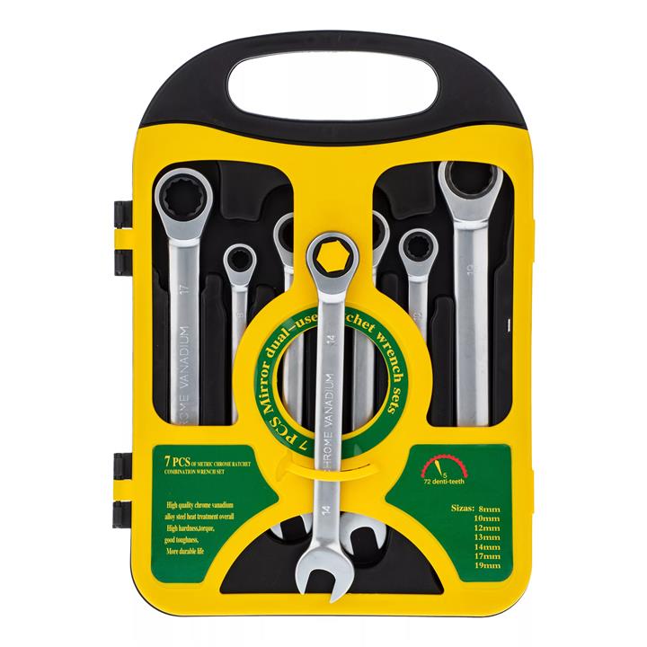 آچار یکسر تخت و یکسر رینگی جغجغهای مدل e2 مجموعه 7 عددی