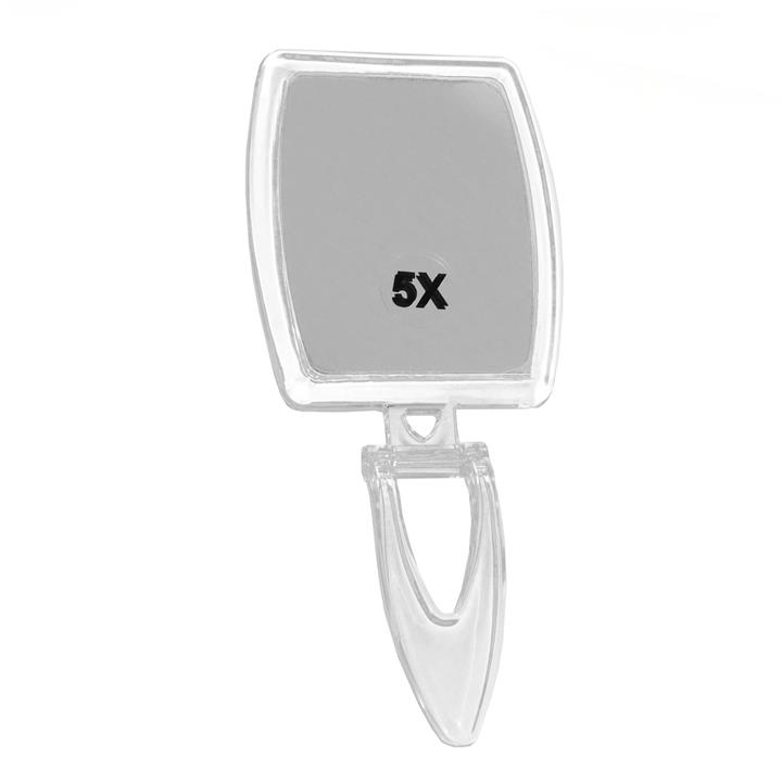 آینه آرایشی دو طرفه با بزرگنمایی 5 برابر و آینه ساده در طرف دیگر فرم پلاستیکی شفاف و با کیفیت استفاده دو کاره به صورت دستی و رو میزی
