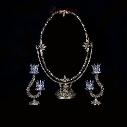 آینه شمعدان ملیله بیضی عمودی جنس برنجی و رنگ آنتیک