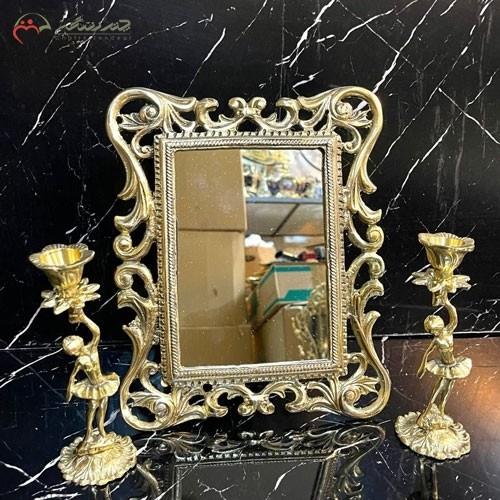 آینه و شمعدان برنزی طلایی رنگ کد 23 با طرح متفاوت گل برجسته ...