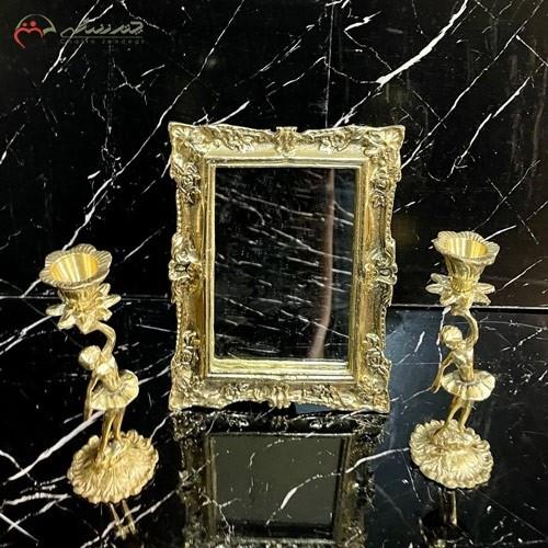 آینه و شمعدان پرکار برنزی کد 11 طرح زیبای گل رز برجسته ،طلای...