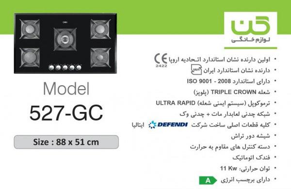 مشخصات فنی اجاق گاز صفحه ای شیشه ای کن مدل 527GC