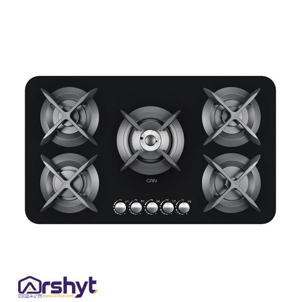 اجاق گاز صفحه ای اپل مشکی کن مشکی ۵شعله شیشه ای ۸۹×۵۲