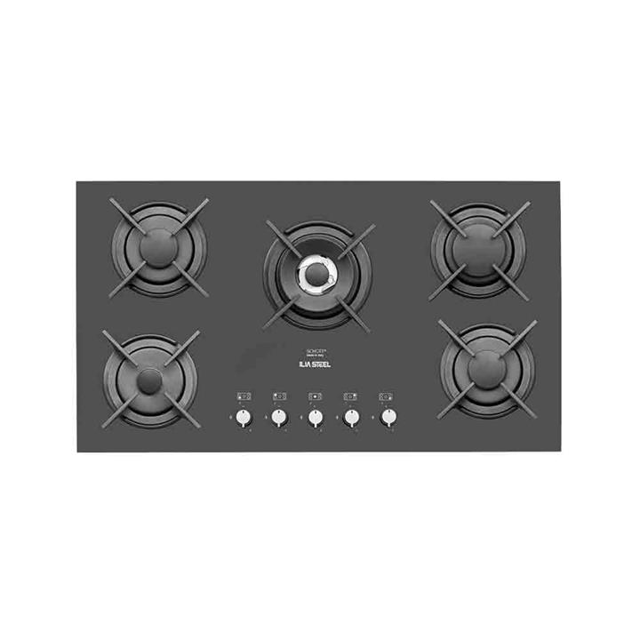 گازصفحه ای 5شعله شیشه ای ایتالیایی ایلیا استیل مدل IG5910