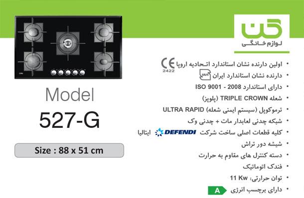 مشخصات فنی اجاق گاز 5 شعله شیشه ای کن مدل Top 527-G