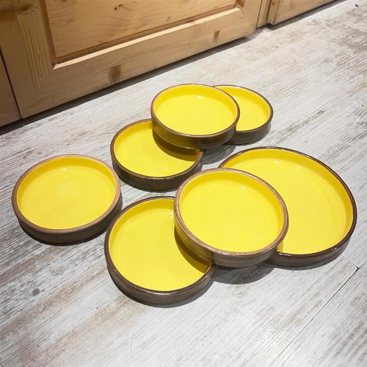اردورخوری سرامیکی 7 تکه گرد رنگ زرد دستساز
