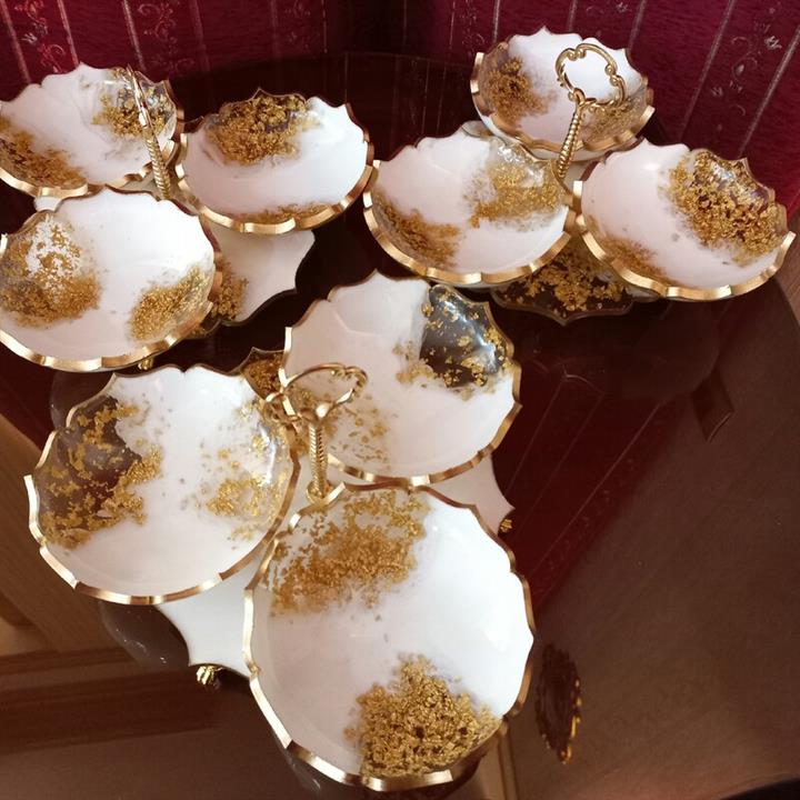 رولت خوری پذیرایی یا دکوراتیو پایه دار رزینی بهمراه 6 عدد پیاله یا زیرلیوانی رزینی