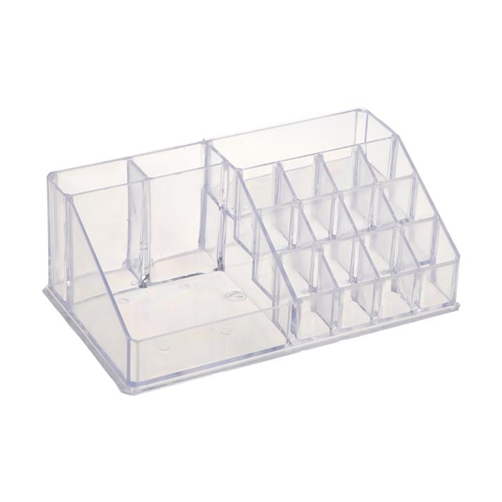 - جنس بدنه اکرولیک شفاف - طول 23 سانتیمتر، عرض 13 سانتیمتر و ارتفاع 8 سانتیمتر - طراحی مناسب برای جا گیری اغلب لوازم آرایش مورد نیاز - بهترین نوع استند لوازم آرایش خانگی برای نظم دهی به لوازم آرایش