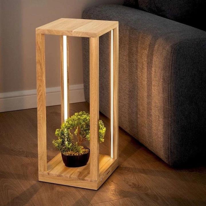 استند چوبی با نورپردازی داخلی و جای گلدان