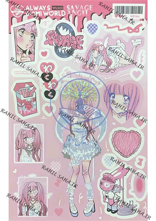 استیکر برش نخورده پینترستی دختر انیمه ای صورتی قلبی مناسب اسکرپ بوک