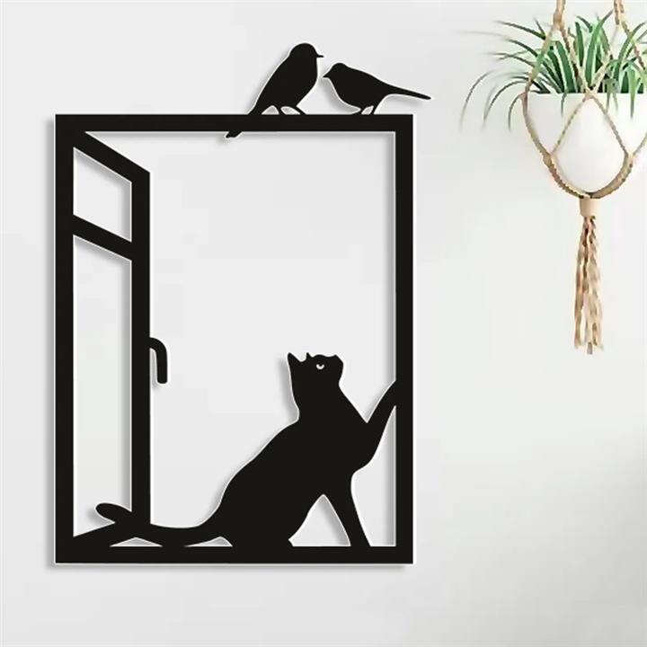 مشخصات فنی استیکر مدل چوبی گربه و پرنده کد T85 -