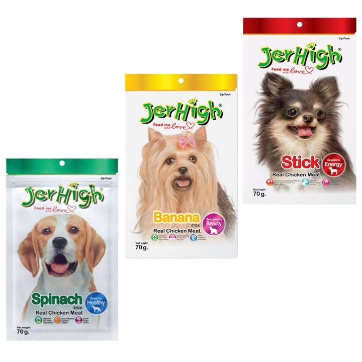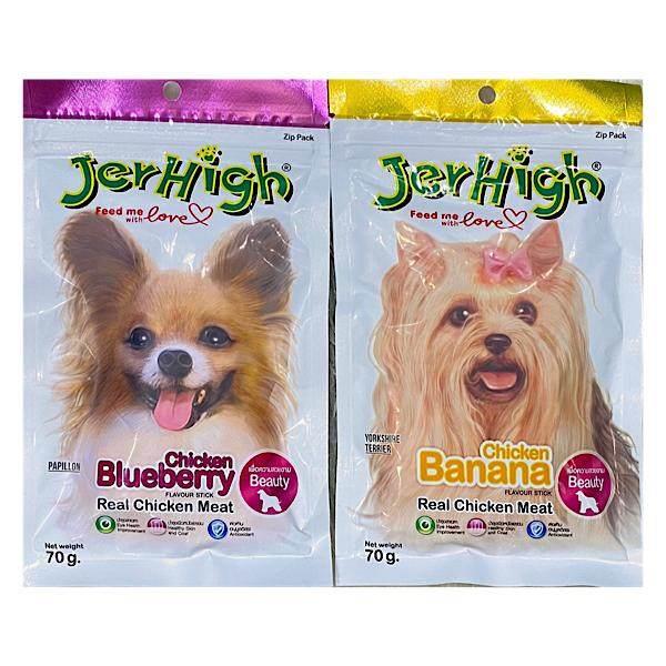 اسنک تشویقی سگ جرهای jerhigh مدل مرغ و موز وزن 70 گرم