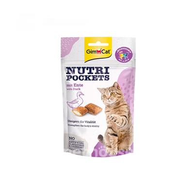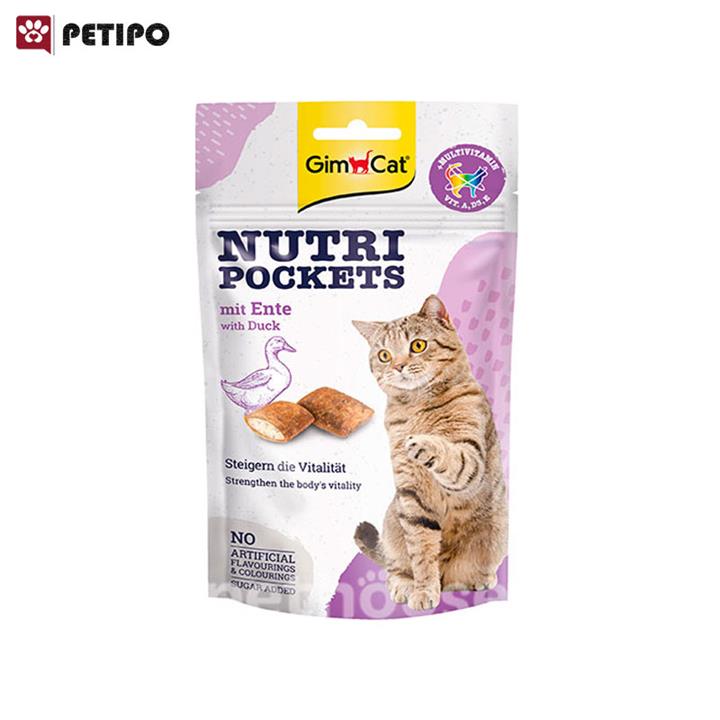 مشخصات فنی اسنک تشویقی نوتری گربه جیم کت با طعم اردک GimCat Nutri Pockets Duck وزن 60 گرم