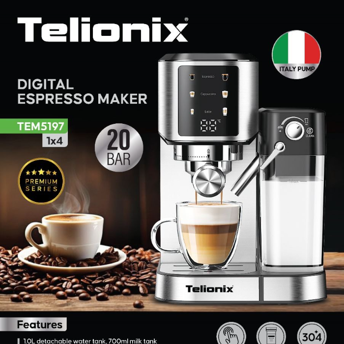 اسپرسوساز دیجیتال تِلیونیکس مدل TEM5197 با فشار 20 بار و مخز...