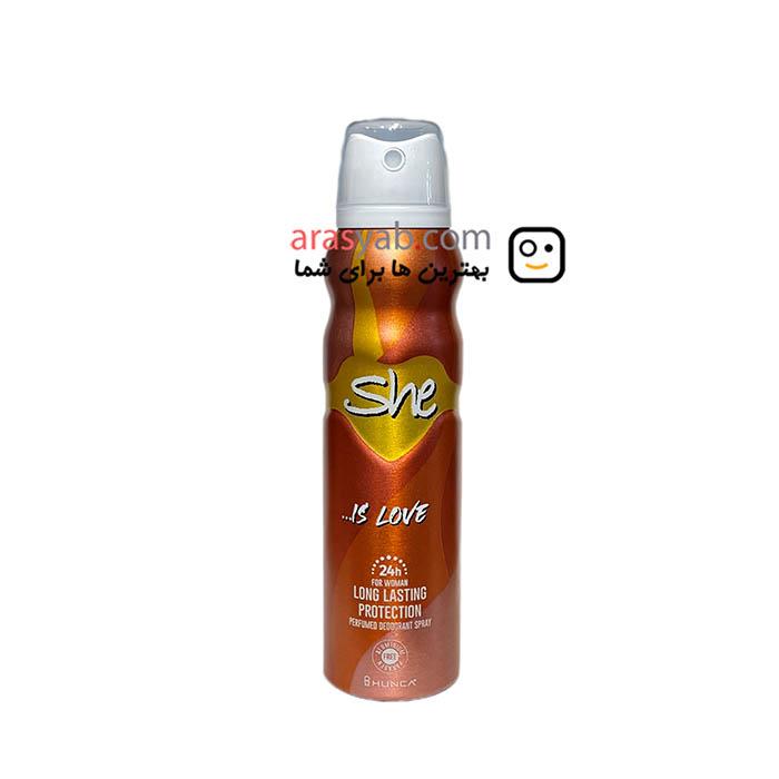 اسپری بدن زنانه شی She مدل is love با رایحه گرم و شیرین حجم ...