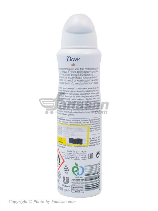 مشخصات فنی اسپری ضد تعریق زنانه داو Dove مدل Invisible Dry حجم 250 میل