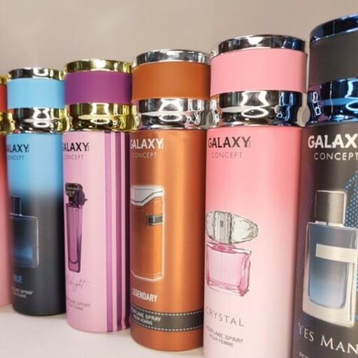 اسپری ضد تعریق گلکسی رایحه ادکلنی معروف اسکندل بلو چنل خوشبو کننده پخش بو وماندگاری خوب
