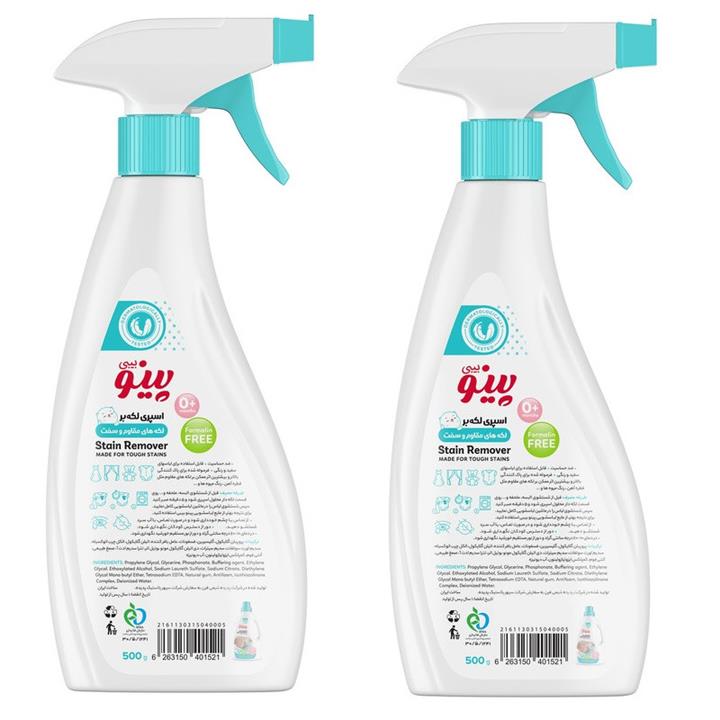 مشخصات فنی اسپری لکه بر لباس کودک پینو بیبی مدل 001 وزن 500 گرم مجموعه 2 عددی