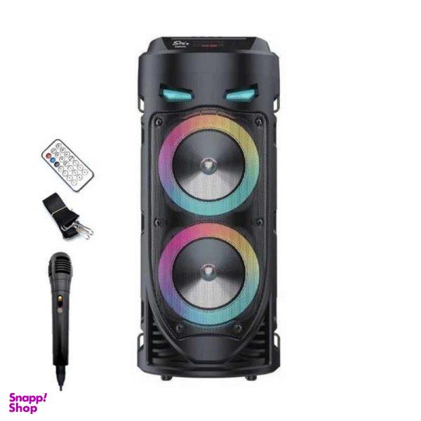 اطلاعات فنی:\r\nقدرت2000W\r\nارتفاع43cm\r\nسایزinch2x4\r\n\r\nمولتی مدیا:\r\nرقص نور جذاب حساس به صدا\r\nبلوتوث\r\nرادیو\r\nفلش\r\nاکولایزر اتومات\r\nای یوایکس\r\nقابلیت تغییر نوع رقص نور\r\nقابلیت tws (جفت شدن با یکدیگر)\r\n\r\nمتعلقات:\r\nمیکروفون وکابل میکروفون\r\nبند دوشی\r\nدفترچه راهنما\r\nکابل شارژر\r\nریموت کنترل