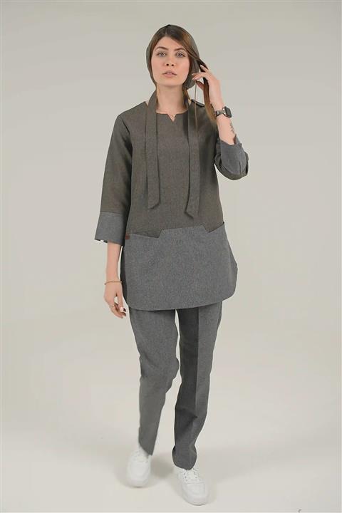 اسکراب زنانه آستین سه ربع طوسی - شکلاتی (دو رنگ)