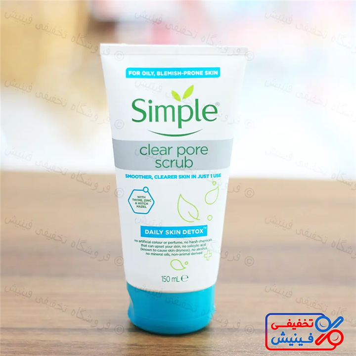 اسکراب پاک کننده منافذ روزانه سیمپل، به دلیل تاثیرگذاری بالا و کیفیت بی نظیر، جزو یکی از بهترین محصولات این برند است. پوست هر روزه در معرض آلودگی های فراوانی قرار می گیرد. از این رو اگر به درستی از آن مراقبت نشود و سلول های مرده از روی پوست پاک نشوند، پوست در طول زمان شفافیت خود را از دست می دهد و به پیری زودرس دچار خواهد شد.\r\nما برای پوستی سالم و شاداب، لازم است که سلول های مرده و رویی را از روی سطح پوست خود پاک کنیم. یکی از محصولاتی که می توانیم برای این منظور از آن استفاده کنیم اسکراب ها هستند. اسکراب ها میتوانند سلول های مرده پوست را از بین می برند و باعث روشنی و زیبایی پوست می شوند. همچنین باعث ایجاد فرصتی برای تولید سلول های تازه می شود و از این طریق به طور غیر مسقتیم باعث ترمیم پوست خواهند شد. همچنین اسکراب ها کمک می کنند که مرطوب کننده ها بهتر جذب پوست شوند.\r\n\r\nاسکراب ها با حذف سلول های مرده و ایجاد فرصت برای سلول های تازه، باعث شادابی و جوان تر به نظر رسیدن آن می شوند. همچنین باعث می شوند رطوبت رسانی به پوست بهتر صورت گیرد. باید توجه داشت که اسکراب ها فقط مخصوص پوست صورت نیستند و کل بدن نیاز به لایه برداری دارد. نکته قابل ذکر دیگر این است که در استفاده از این محصولات نباید زیاده روی کرد زیرا باعث نازک شدن پوست و ایجاد التهاب می شود. در ضمن فراموش نکنید که بعد از اصلاح موهای زائد خود، پوست شما حساس شده است و در نتیجه نباید از اسکراب استفاده کنید.\r\n\r\nاین اسکراب محصولی گیاهی است که با فرمولاسیون خود باعث جوانی پوست می شود و از خشکی آن جلوگیری می کند. همچنین اسکراب پاک کننده منافذ روزانه سیمپل با انواع پوست خشک و چرب و حتی حساس ترین پوست ها سازگار است و می تواند تمامی سلول های مرده پوست را از بین ببرد. با استفاده از این محصول می توانید پوستی نرم و صاف و بدون جای لک و جوش داشته باشید.\r\nبرند سیمپل یک برند انگلیسی است و چون در تولید محصولات خود از تست حیوانی استفاده نمی کند، طرفداران زیادی دارد. اکثر محصولات این برند مخصوص پوست های حساس است و از کیفیت بالایی برخوردار هستند.