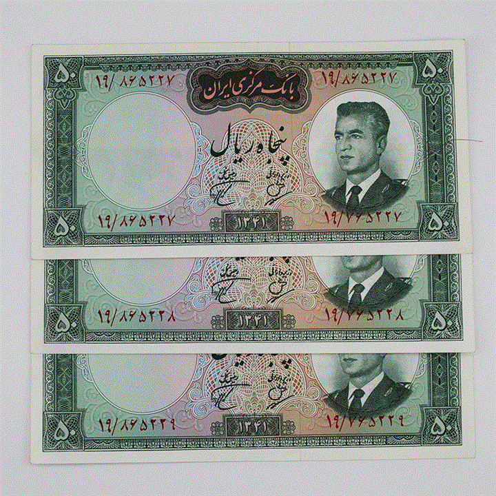 اسکناس 50 ریالی محمدرضا شاه پهلوی سری دوم 1341 – ست سه عددی ...