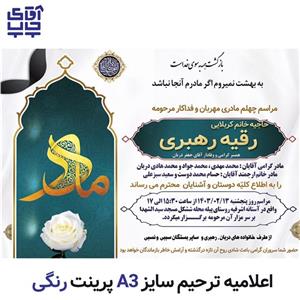 محصولات چاپی اعلامیه ترحیم رنگی تحریر سایز A3 (تعداد 1 عدد) کد 001