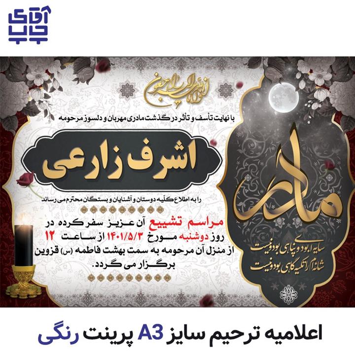 محصولات چاپی اعلامیه ترحیم رنگی تحریر سایز A3 (تعداد 10 عدد) کد 005
