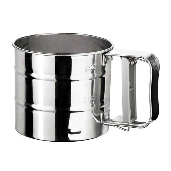 دارای همزن آرد با اهرم فلزی در داخل دسته قابل استفاده به عنوان پیمانه