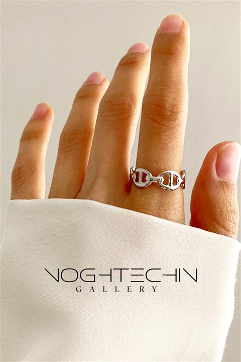 انگشتر زنانه برند فشن مدل زنجیری استیل رنگثابت با کیفیت بال...