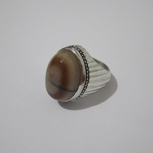 انگشتر عقیق اصل و معدنی درشت 29 گرم سایز 65 با رکاب برنجی و نگین درشت