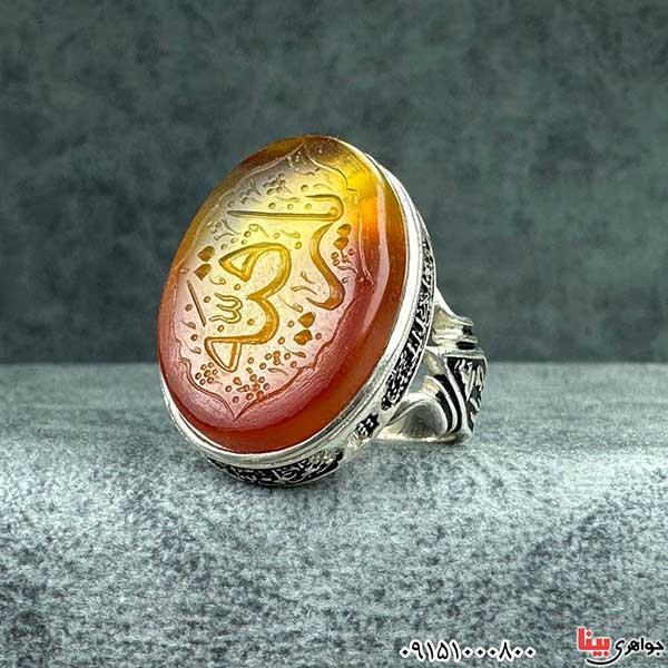 انگشتر عقیق خراسانی خطی دو رنگ با حکاکی یا رقیه مردانه ۳۳۱۸۷