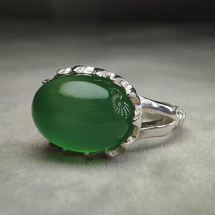 انگشتر عقیق سبز نقره مردانه طرح زره