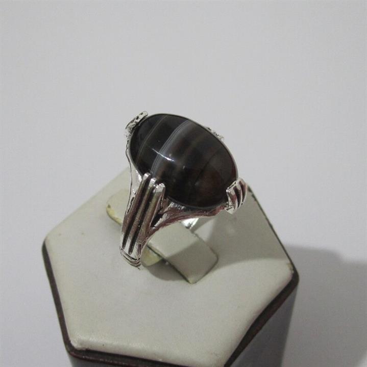 انگشتر عقیق سلیمانی اصل با رکاب برنجی سایز 65 و نگین معدنی مشکی با رگه طبیعی