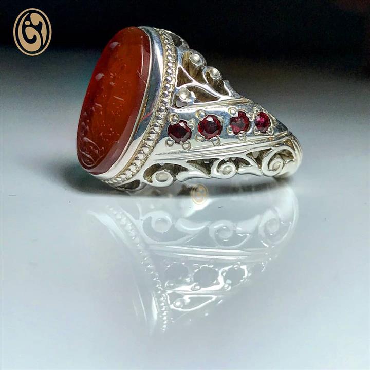 انگشتر فیلی دور شبکه نگین عقیق سرخ یمنی مخراج یاقوت با حکاکی...