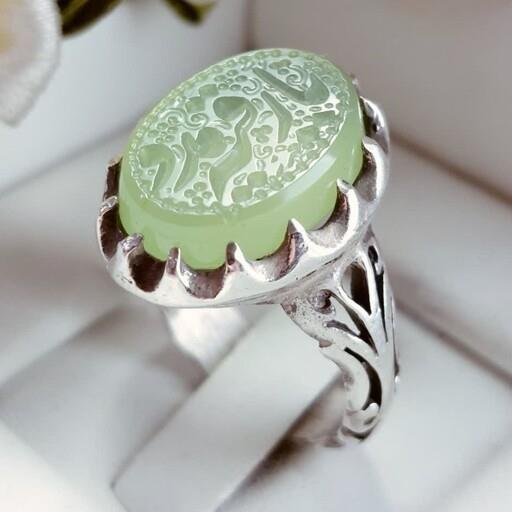 مشخصات فنی انگشتر نقره عقیق سبز کاهویی 2